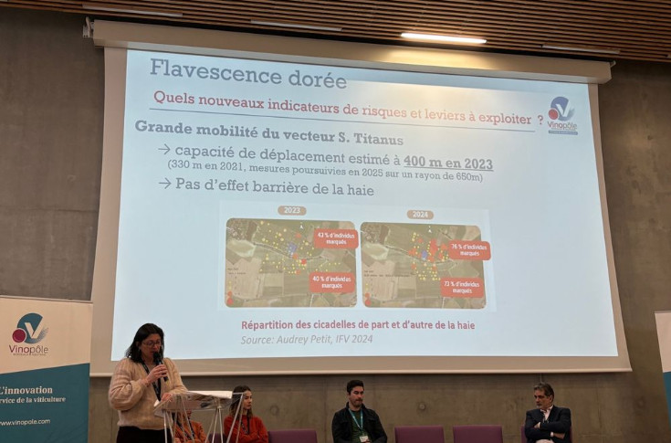Les cicadelles de la flavescence dorée sont très mobiles. Et les données recueillies en 2023 montrent qu’elles peuvent parcourir au moins 400 m. Les haies peuvent-elles les arrêter ‘ Les travaux de l’IFV sud-ouest montrent que non. Q uelle distance peuvent parcourir les cicadelles de la flavescence dorée (S. titanus) ‘ Au moins 400 m d’après les données recueillies par l’IFV sud-ouest en 2023 dans le cadre du projet Risca. Et peut-être même encore plus l’Institut ayant poursuivi les suivis en 2025 avec une distance de 650 m mais les résultats ne sont pas encore disponibles. C’est ce qu’a rapporté Marie Descotis-Bonnaud, référente PNDV (Plan National Durabilité du [...] Voir l'article complet sur VitiSphere
